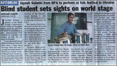 The brethren of Lodge Fellowship had achieved their desire to bring into limelight these visually impaired who have more talent in them than their normal counterparts. Since Jayesh could not afford his trip to Ukraine the brethren of Lodge Fellowship unanimously came forward and sponsored his trip to Ukraine .