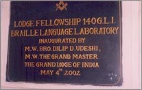 The country’s first Braille Language Laboratory, named “LODGE FELLOWSHIP 140 G.L.I. BRAILLE LANGUAGE LABORATORY” was inaugurated in the premises of Blind People’s Association, Ahmedabad on 4 th May 2002 by M.Wor. Bro. Dilip D. Udeshi, M.Wor. The Grand Master, Grand Lodge of India .