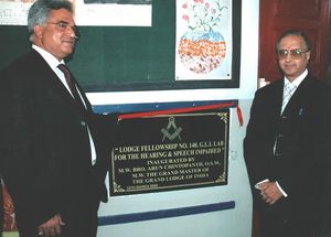 The Hearing impaired laboratory was inaugurated by M.W. Bro. Arun Chintopanth, O.S.M., M.W. The Grand Master of the Grand Lodge of Ancient, Free & Accepted Masons of India, in the presence of R.W. The R.G.M. of W.I., R.W. Bro. Vasudev J. Masurekar and other Sr. Officers from the Grand Lodge of India and Regional Grand Lodge of Western India on 12th March 2006 at Umang Education & Research Centre for the Hearing Impaired., Ellisbridge Municipal School No. 12 Building, Fatehnagar, Paldi, Ahmedabad – 380007.