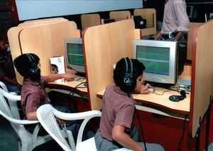 These booths have an Acrylic Sheet & a Mirror in front of the student who can also view his/her lip movement in the mirror vis-a-vis the teachers lip movement on the TV screen or directly. Such a comparison would aid in improving the students lip movement. The above Hearing impaired language laboratory will be very useful for improving the talking skills, lesson grasping and cramming power of the speech & hearing impaired through a self assertive learning device.