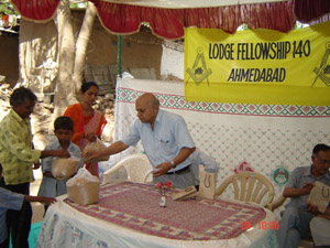 The Brethren of Lodge Fellowship No. 140 Ahmedabad celebrated the Universal Brotherhood day with a pledge to help the needy. The function was held at “ W. Bro. M. N. Subramanian Lodge Fellowship Youth Development Centre” where apart from the Brethren of Lodge Fellowship were present the gracious ladies as also Non masons & nearly 150 women & men from “Below Poverty Line” (BPL) families. The chief guest on the occasion was Ms. Asha Tekwani, Corporator & President, Women & Child Development Committee.